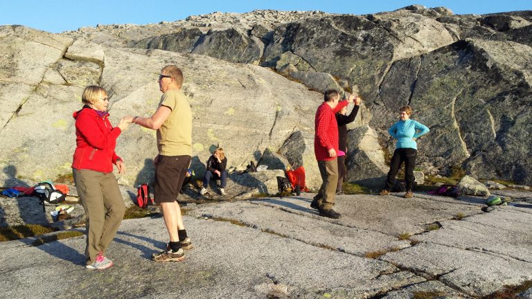 Vi går opp fra Hugo Hansen kl. 18:00. Hugo bor nesten «ytterst til venstre» i Ersfjordbotn. Det er muligheter for å parkere noen biler i nærheten. Det er lurt å ta med litt å drikke, gjerne også noe å spise. Danseplassen ligger på ca 600 meters høyde.